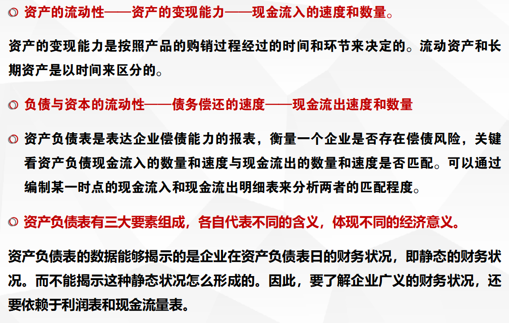 资产负债表按流动性由大到小排序: