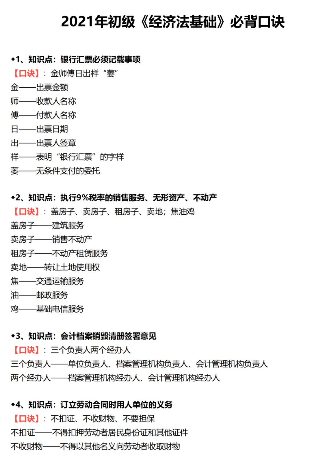 2021年初级考生冲刺干货来了,为大家整理了2021年初级会计《经济法基础》及《会计实务》必背口诀整理,帮助大家快速拿下这些考点!快收藏起来多看看!