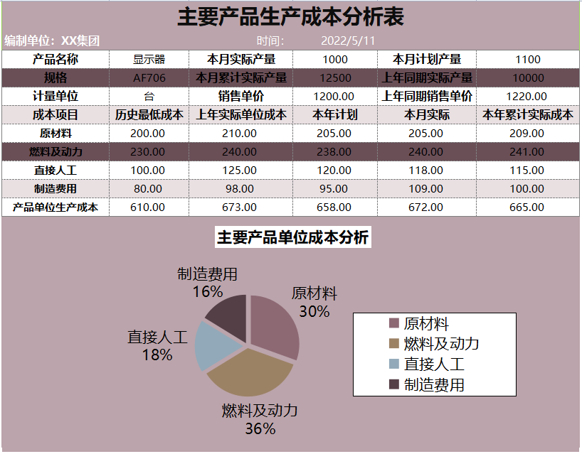 篇幅有限,成本核算分析报表模板就不一一展示了,