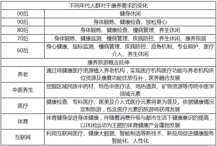 (3)自然、人文及康养元素植入推动康养旅游产品元素的年轻化及多元化。过去十几年间,自然资源型的康养旅游发展程度更高,但在身心健康获得同样重视的当下,如何把握新客群及其需求,结合文化软实力及医疗保健元素成为下一阶段康养旅游的重点发掘并培育的卖点。