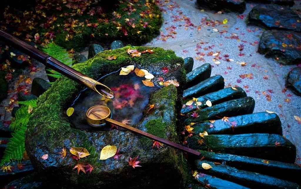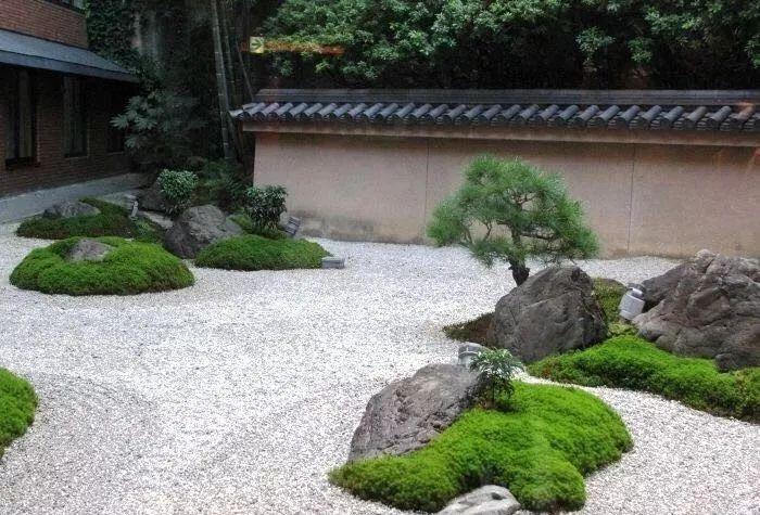 日式的禅意景致,体积相对较小,有时候就是一个流水器或者一个水钵或者一个面积十分有限的枯山水……