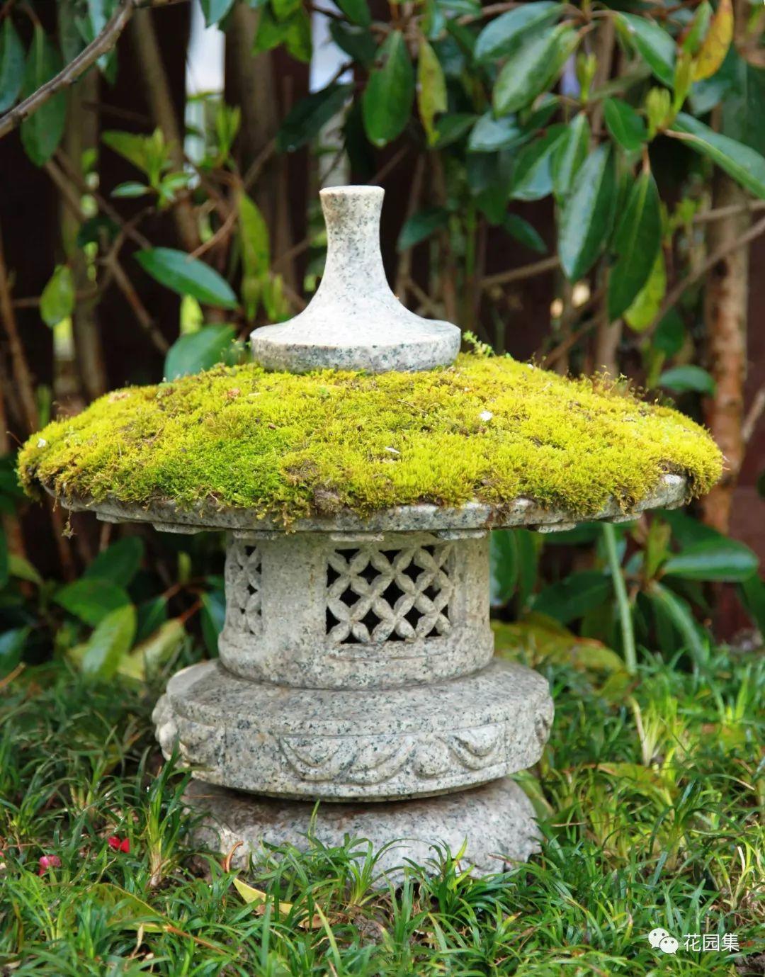 蹲踞惊鹿附石苔藓石灯笼如果你花园中的小角落面积较大,不妨可以试试把控好尺度打造一个小型的枯山水景观。