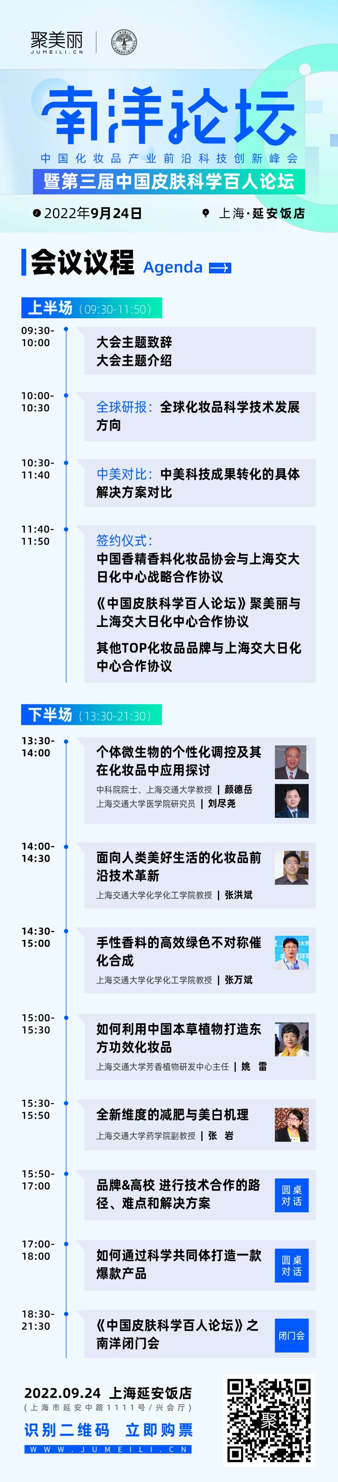 两大院士、15+教授齐聚第三届中国皮肤科学百人论坛,9月再聚上海!上海交大日化中心携手聚美丽,邀您共商校企合作、成果转化大计。
