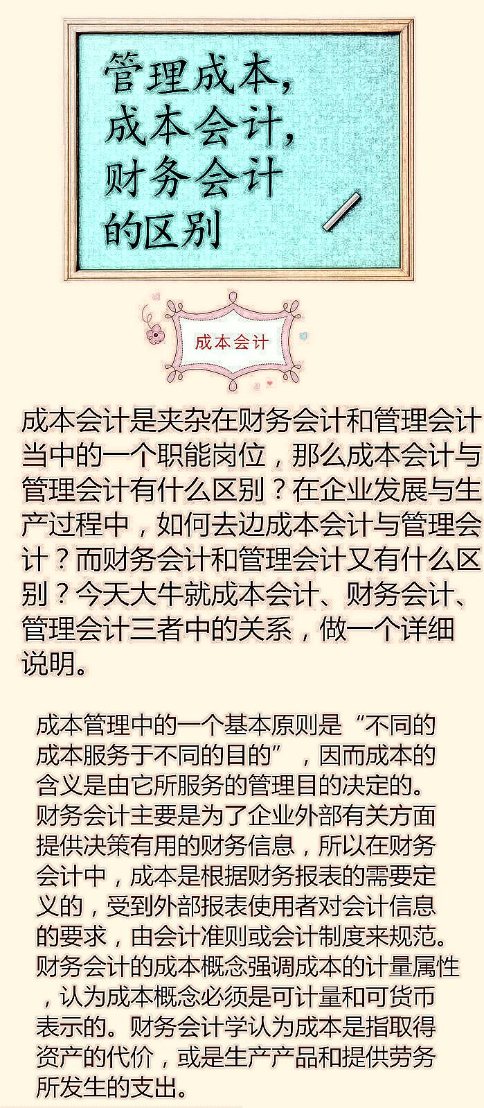 2、财务会计主要从核算的角度来运用成本,强调将收入与其相应的成本相配比,一些不能在现阶段产生收益的成本研发成本、设计成本等这些与企业的长期发展有关的成本都不能正确的核算。
