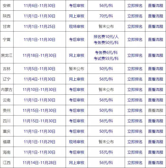 报名月已经过去大半啦,今天为止,2020年初级报名只剩下6天的时间!如果还有不知道自己报名地区的起止时间和审核方式哒,快来看看下面的表格吧!