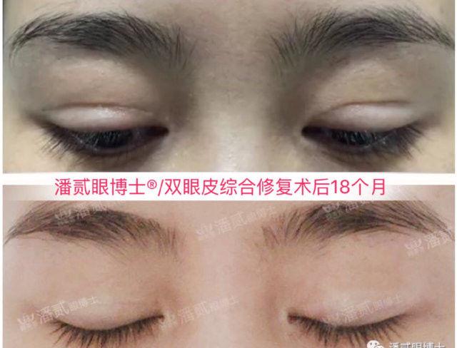 闭眼的切口凹陷改善了,疤痕也没有术前明显。不过这里要提一下,双眼皮修复中想要修成无痕的样子比较难,案例里姑娘疤痕恢复得很好,外观越差反差越大,但不表示每个顾客都能恢复像初眼一样,这个要有理性认知。