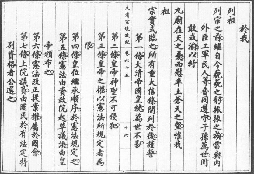 辛亥革命之后,1911年11月3日,清廷再次公布《宪法重大信条十九条》可在这一宪法性质的文件中,皇权也只是让出一小部分,对臣民的权利也只字未提。因此并未得到立宪派的支持,清政府第二次尝试君主立宪制也以失败告终。