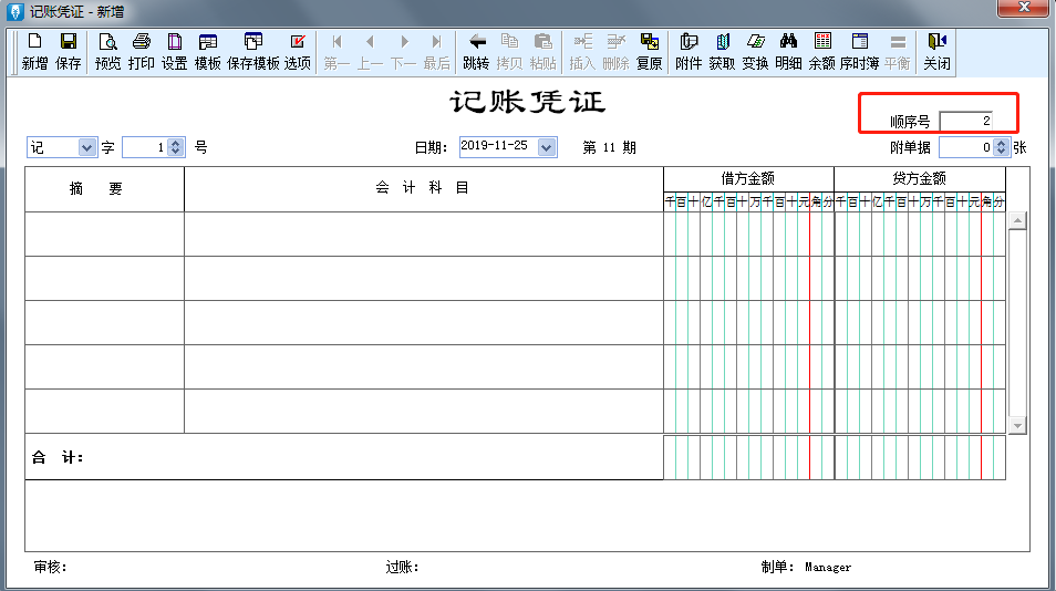 ④顺序号的填写。一般为所有的凭证号的总和。