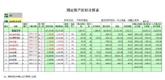 固定资产折旧方法模板表