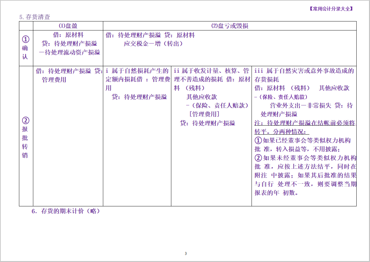 ⑤存货清查及减值与出售