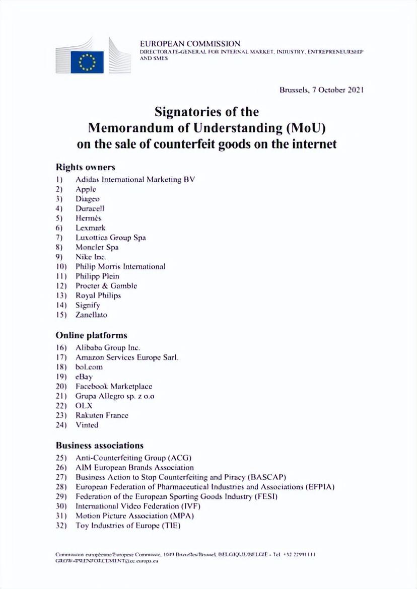 值得注意的是,签署该备忘录的企业除了亚马逊、eBay这些美欧平台之外,还包括了中国的阿里巴巴。
