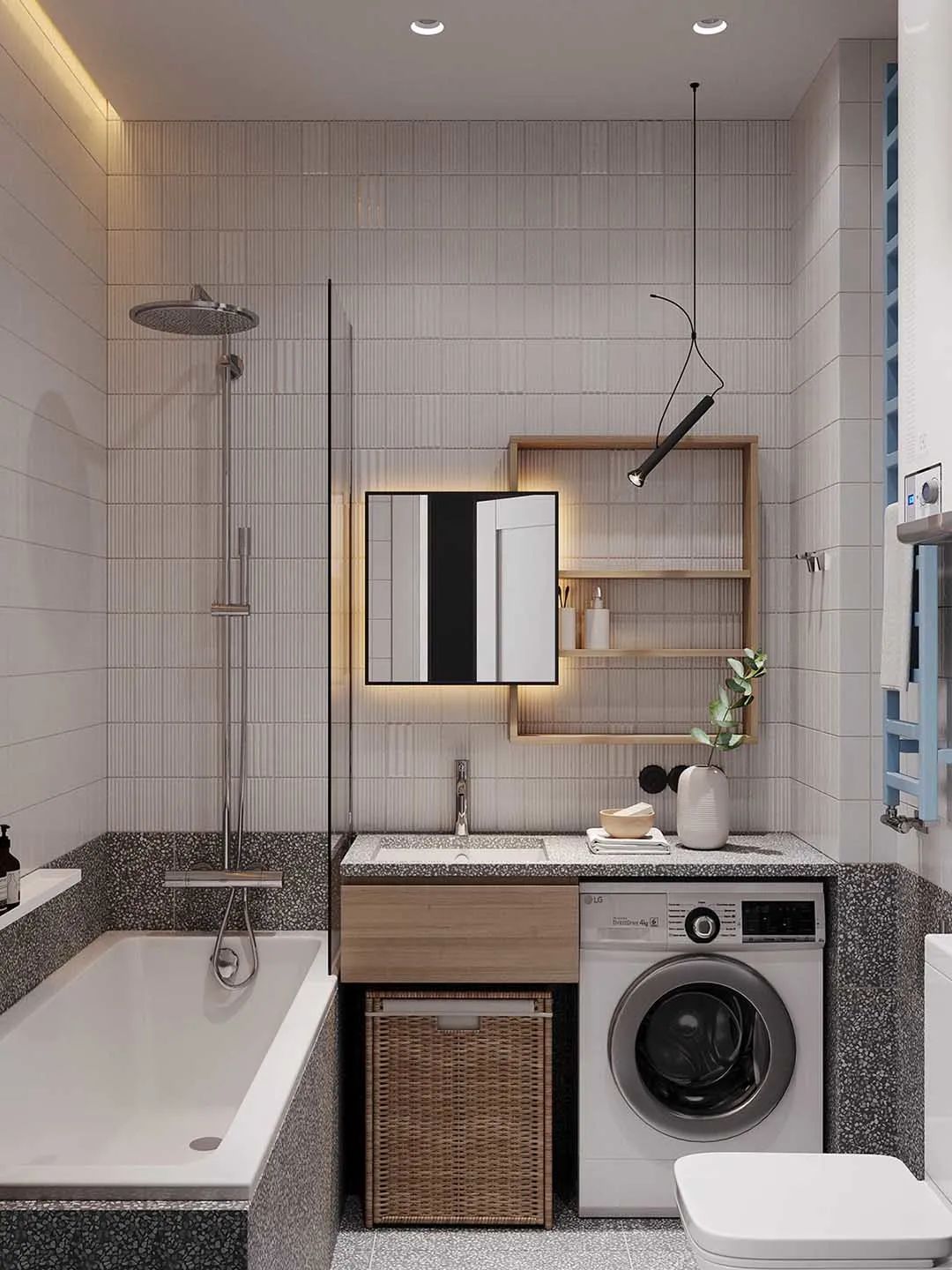 同时也将洗衣功能安排在卫生间里,让小空间发挥多种功能。