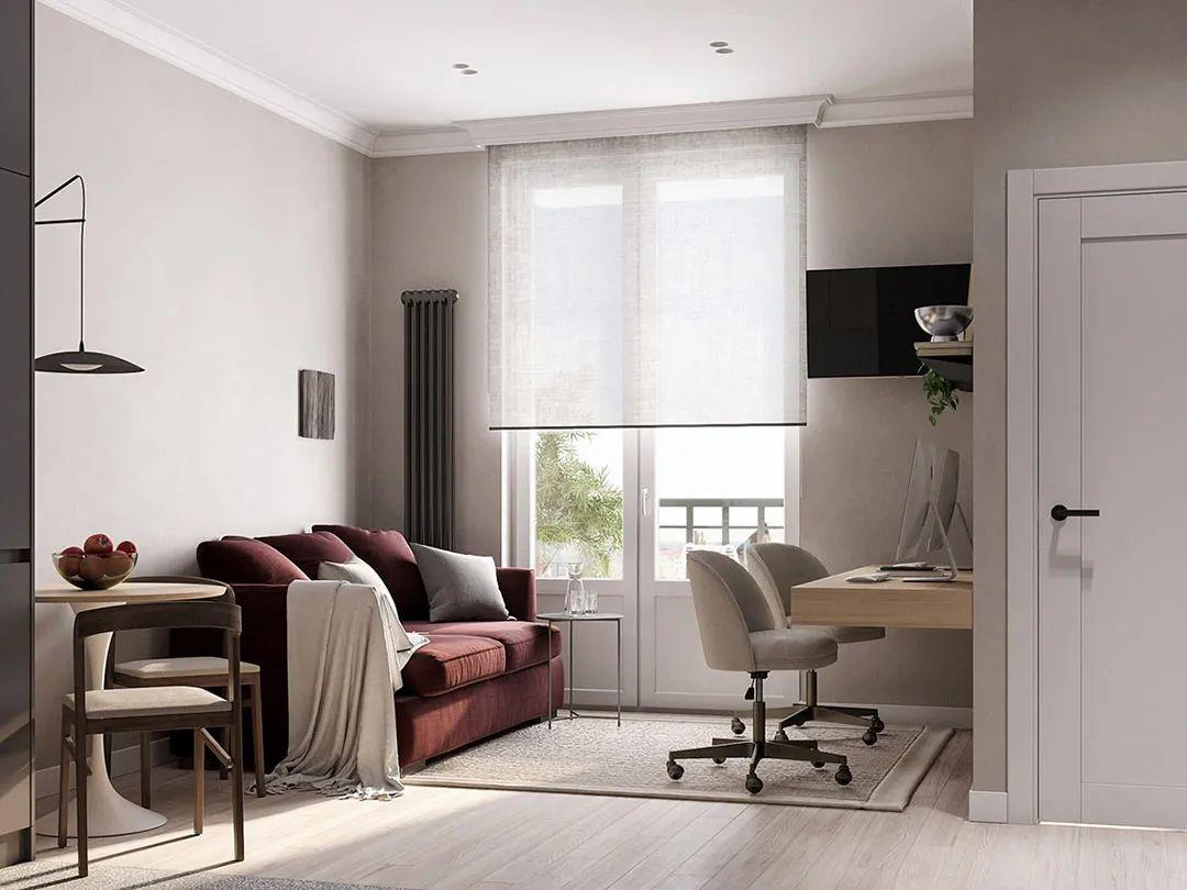 小户型在用色上通常比较简单,避免过于繁复的色彩导致空间局促。