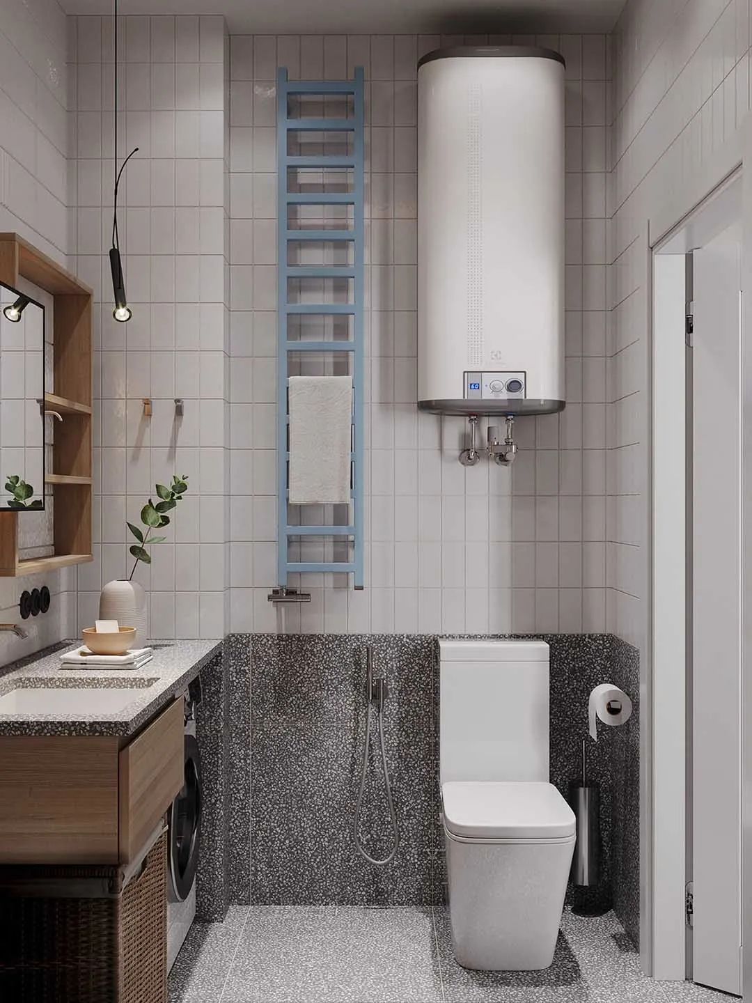 为加热毛巾架涂上了淡蓝色,增添一丝活泼俏皮的气息。