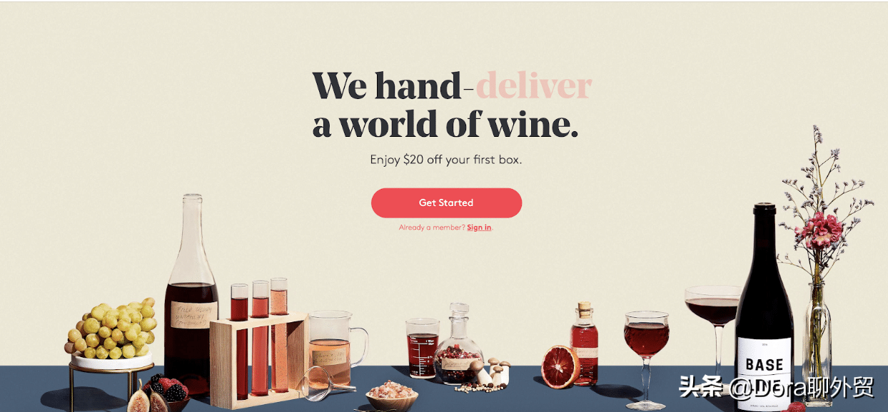 产品的优势写得很清晰“手工挑选、手工制作、手工交付葡萄酒”,在设计方面,整个页面都在专注葡萄酒,并且提供了20美元的折扣。