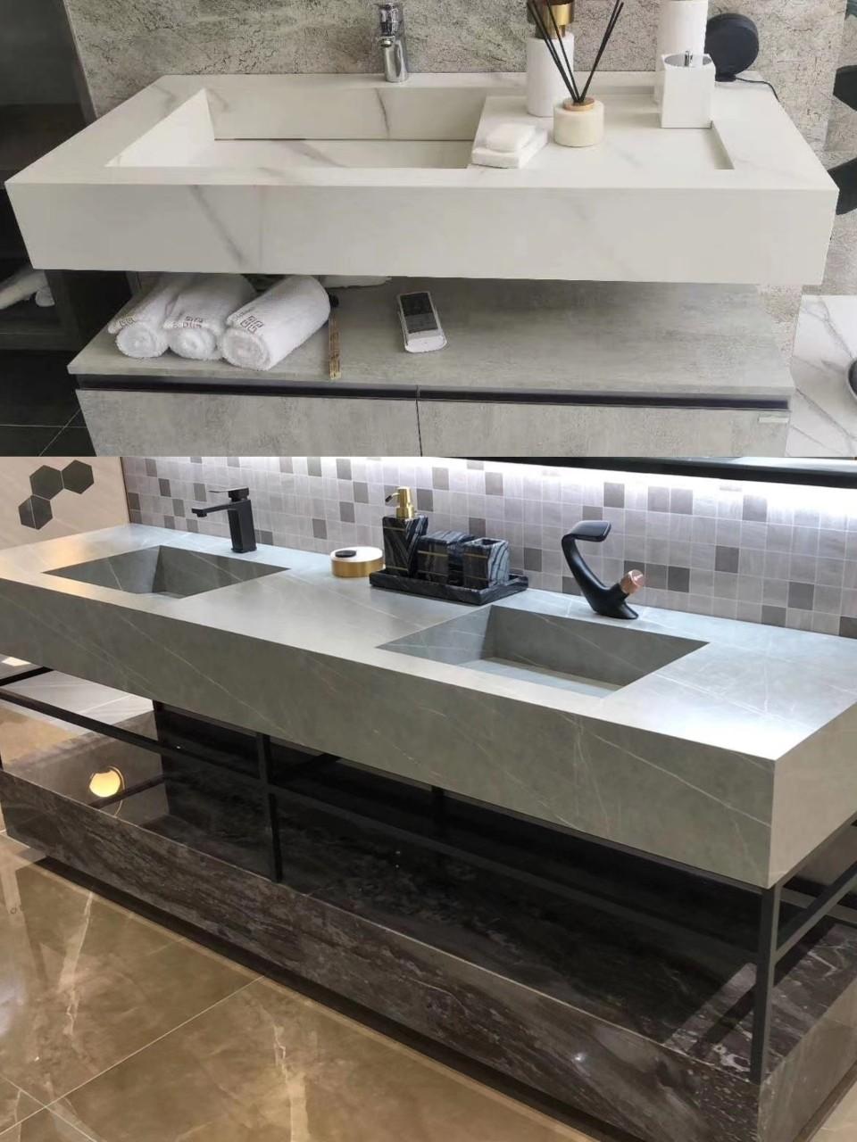 还是岩板!不得不说一种新型的材料刚出来时,因为它的优点和特性,更容易吸引人的目光。相比传统洗手盆,岩板洗手盆线条干净利落,天然石材纹理看着高大上。
