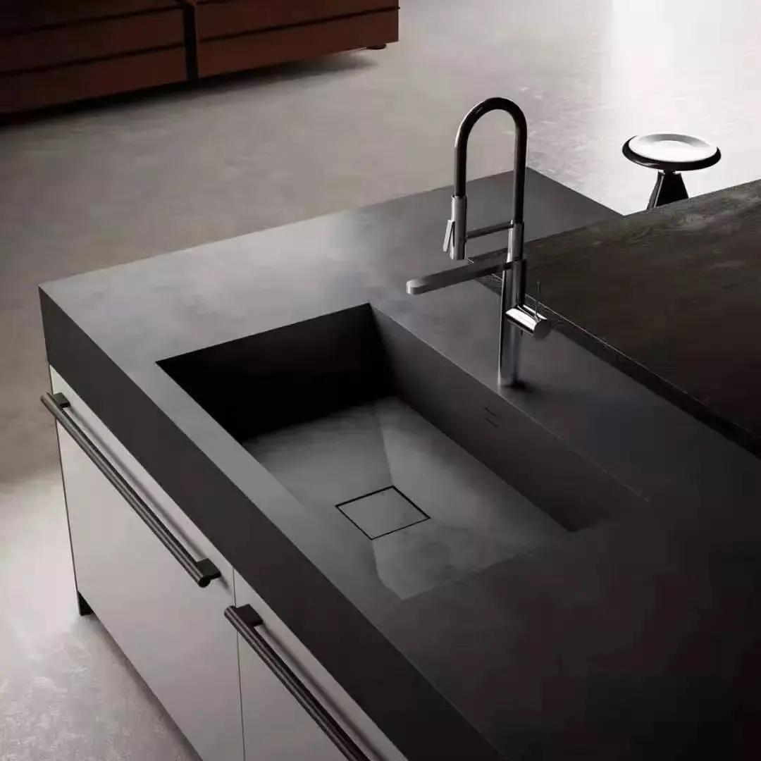 但看似一体化的岩板洗手盆,其实都是拼接的。因为岩板材质的特殊性,硬度达到6级莫氏硬度以上,直线条平面式的拼接,就会影响洗手盆的下水问题。
