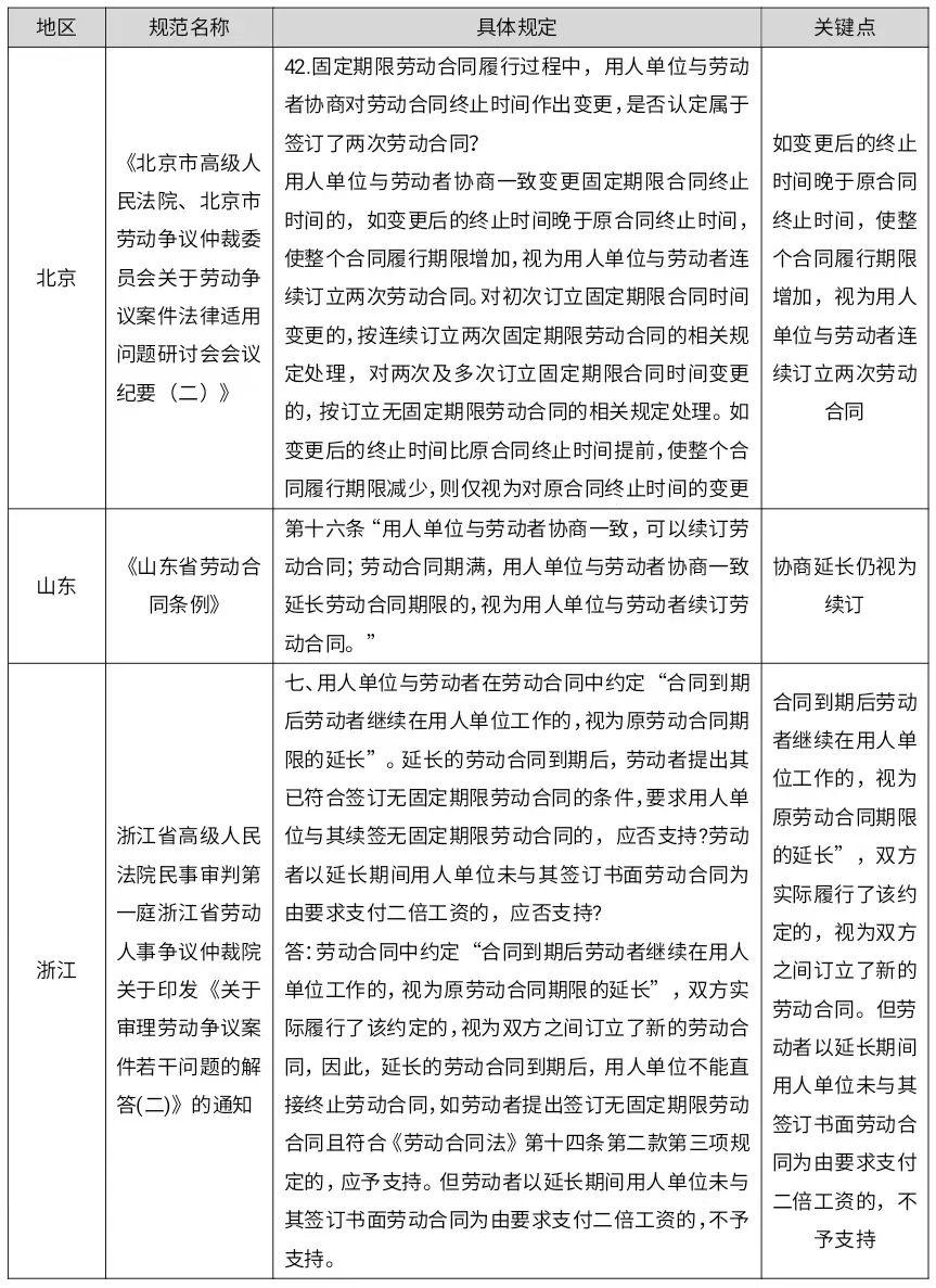 鉴于劳动合同延长是否属于续订的判断关涉劳动关系的存续及单位义务的履行,各地因为不同规定导致实践中的不同结果。