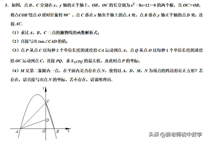 最考先学习赛老师的这两篇文章:《赛老师伴你过寒假:九年级,备中考,矩形存在性问题》和《赛老师伴你过寒假:备中考,今天解决等腰三角形存在性问题》。