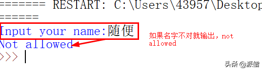 如何输入名字不是“派僧”,那么输出 “Not allowed":