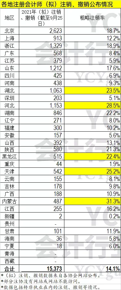 截至2021年9月25日,全国已经有15373名注册会计师被撤销/注销证书。包括注销、撤销、转非执业、拟注销(只北京注协)。