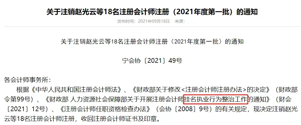 其中9月份粗略统计共注销3768位注册会计师,不少注协在注销公示通知中,都特别提到了《关于注册会计师挂名执业行为整治清理的通知》。