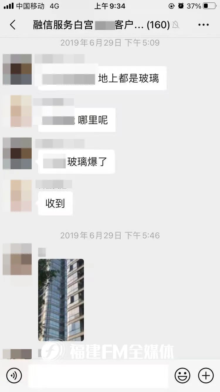 FM全媒体记者心野来到融信湾花园B区看到,林女士所在的单元楼已有多处玻璃幕墙出现损坏,除此之外,其他单元楼也或多或少缺了几块玻璃。一些业主告诉记者,这些玻璃大多都是突然自爆,好在没有造成人员或是财物损坏,因此大多业主也没有在意。