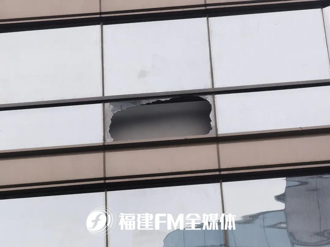 林女士:“我就绕过去看了一下,发现真的是我们家的玻璃爆了。但是这块玻璃在我们入住之前就建好了,应该是公共区域的外墙,碎开了之后里面露出来的是实心的墙壁。”