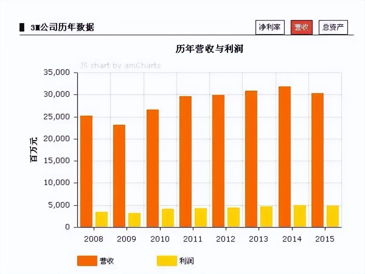 2013年,3M在全球销售额突破300亿美元。2014年,3M科学家和研究人员获得了该公司第10万个专利。2015财年,3M公司全球销售额为302.74亿美元,实现利润48.33亿美元,全球员工总数接近9万人。