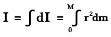 我们将物体质量进行微分,将物体分为无穷个小质量块微分dm,转动惯量的微分即为dI = r^²dm。要计算物体总质量M的转动惯量I,我们将物体质量微分dm对应的转动惯量的微分dI进行求和。或者简而言之,我们对其进行积分: