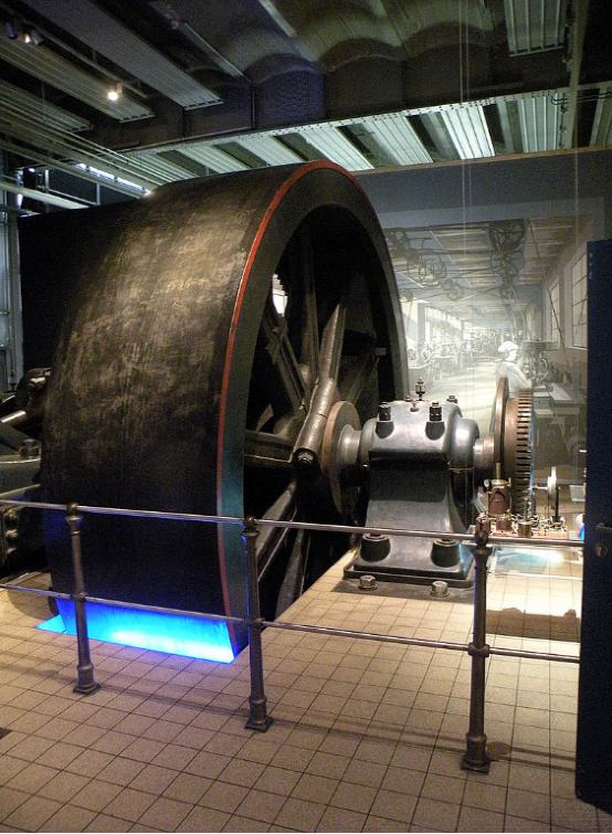 飞轮拥有很大的转动惯量,可以用来使机械运转顺滑。