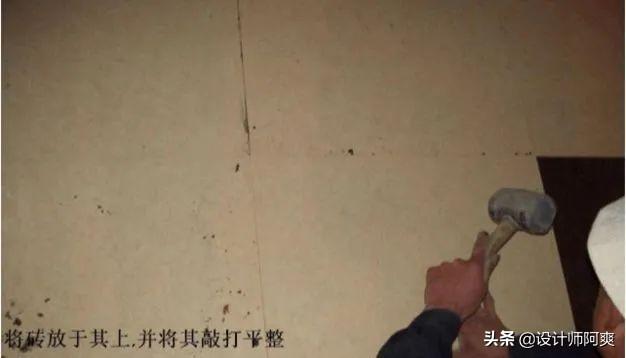 干铺:给干净的地基表面浇水,充分湿润后,干性水泥与水泥砂浆混合铺开。把瓷砖放置在砂浆之上,用力压实结合层。压实后,再把瓷砖取下来,背面抹上水泥浆,用胶皮锤振实。干铺比较麻烦,但能减少空鼓。