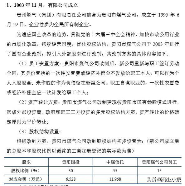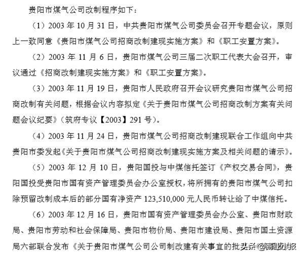 2003年的最后一天,企业改制工作圆满完成,中煤信托代表刘江成功入股贵阳燃气公司,以12351万元的代价取得公司原始股份(净资产定价)60.25%的股权。