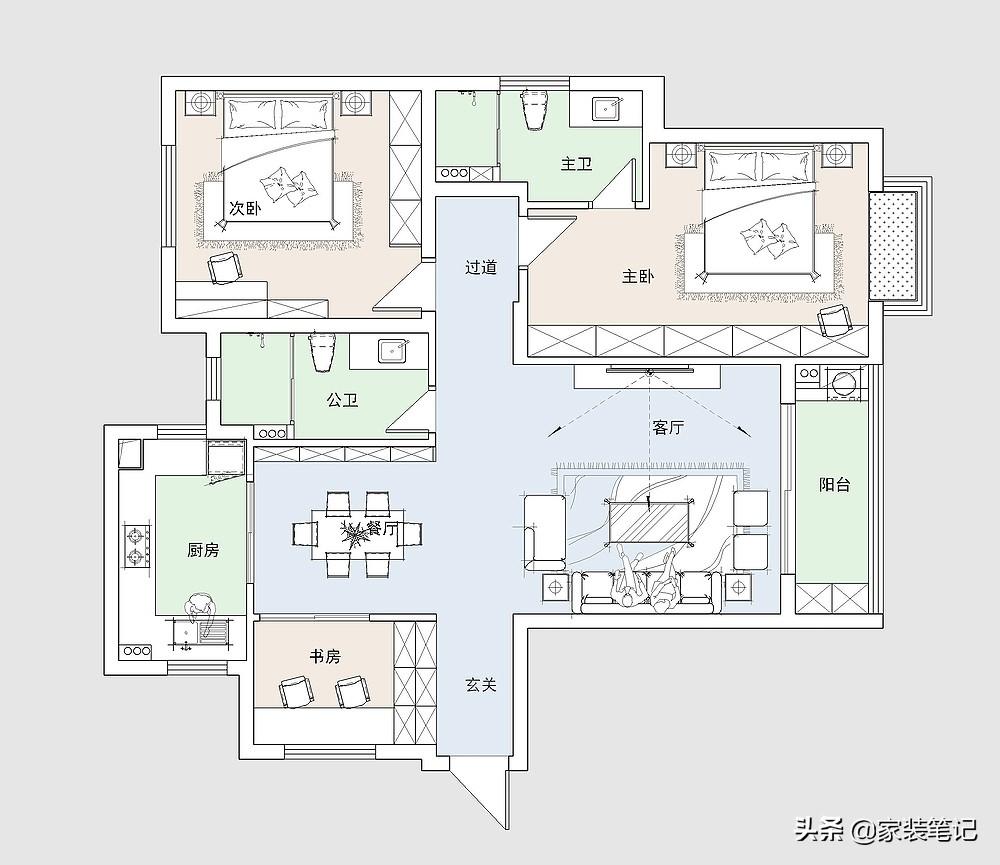 房子的结构已经很好了,在平面结构上没多大优化的空间了。不过通过沟通后,还是做了几点很好的设计利用:
