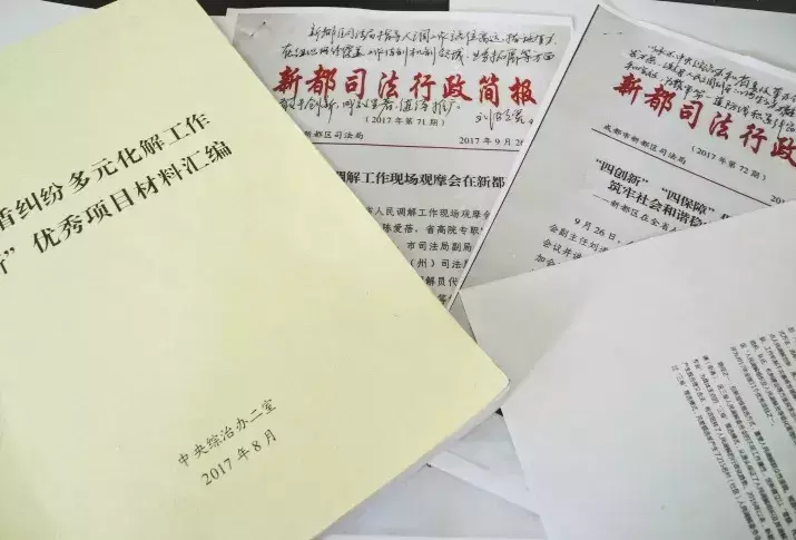 2017年,新都区人民调解组织、人民调解员星级等级评定工作,被中央综治办评为全国11个“矛盾纠纷多元化解工作创新”优秀项目之一。