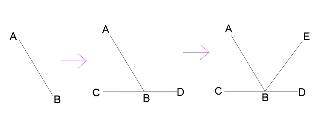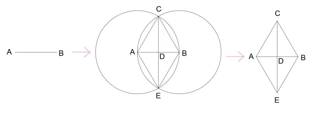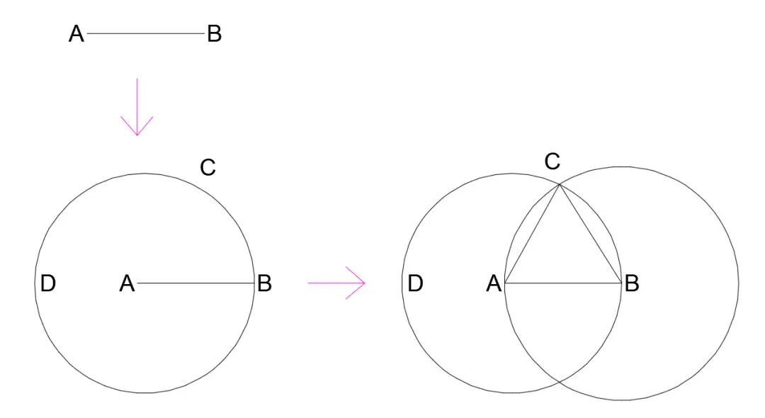3、从两圆交点C,作线段CA、CB。(公设1)