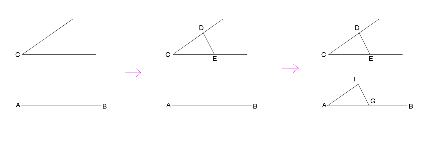 在已知线段AB两端引出两条AC、BC交于AB上方C点。