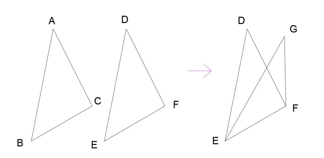 6、那么ED=EG,DF=GF。又三角形DEF、GEF共底边EF,与“命题7:过线段两端点引出的两条线段交于一点,则不可能在该线段的同侧作出相交于另一点的两条线段,分别等于前两条线段”矛盾。