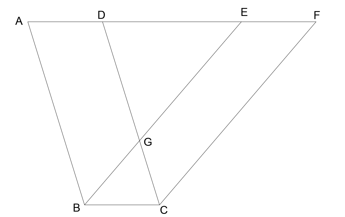 已知平行四边形ABCD和BCFE,它们有共同的底边BC且在相同平行线BC、AF之间。