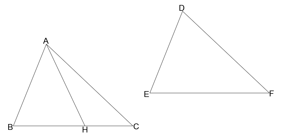 已知线段AB=DE,AC=DF,角A=角D。目标:证明三角形ABC全等于三角形DEF。