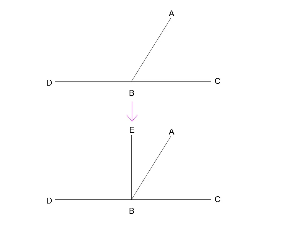 3、过点D作DE平行于AB。(命题31)过点B作BE平行于AD。(命题31)
