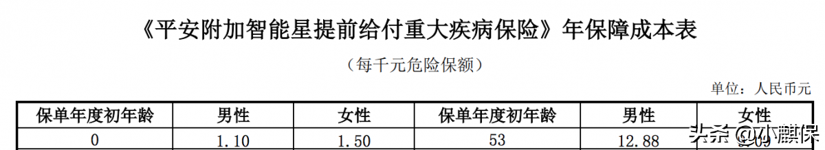 保障成本以重疾险为例子,像目前市面上产品采用均衡费率,缴费20或者30年保障终身,而智能星采用自然费率,年年缴费,随着年龄增加缴费增加。