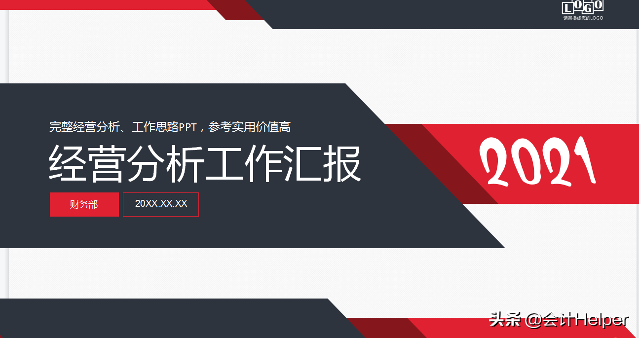 转眼间就是2021年年底了,最后一个月里,作为财务人员的大家,都是怎么度过的?是不是忙着写总结报告呢?一到这个时间节点,不少人都发愁怎么写年终总结?财务经理做的财务部工作总结PPT,大家在写的过程中没有什么思路的,今天就来看看这套财务部年终总结模板吧。