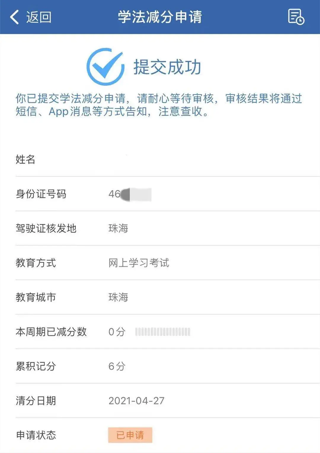 有一位喜欢驾驶证“干净”的雷先生,也成功减免了3分。雷先生开车6年时间,几乎没记过分,唯独去年不小心压了实线变道,被记3分。虽然3分影响不大,可雷先生心里愣是不舒服,“学法减分”实施当天他就申请了。进入学习库学习时,他花了一整天时间把所有的视频和文档都看完,三次考试自然就全部一次通过,不用补考。