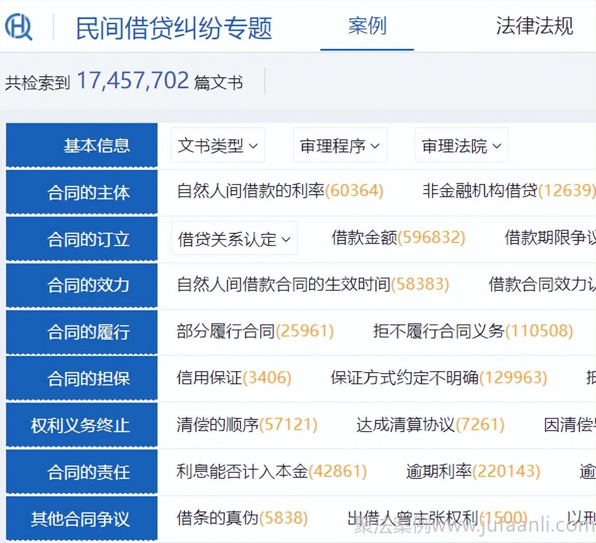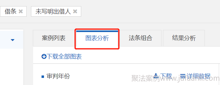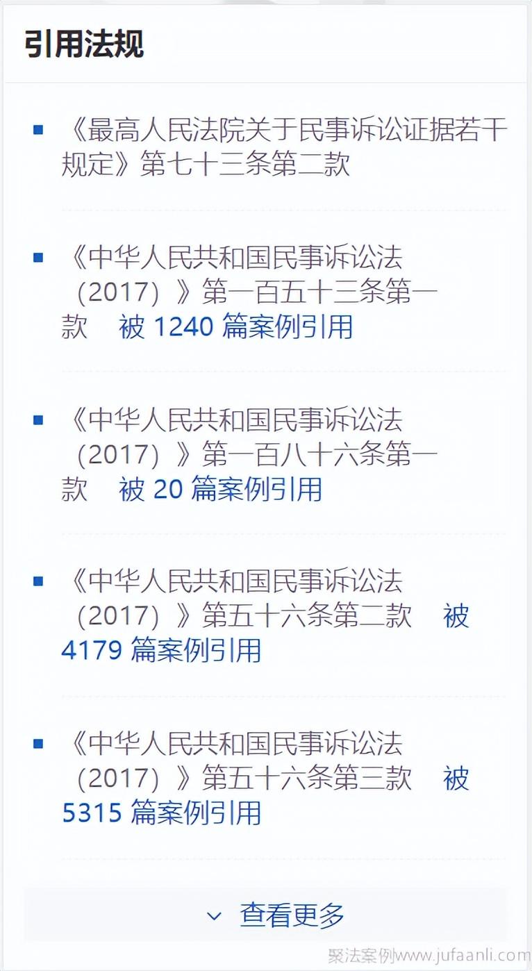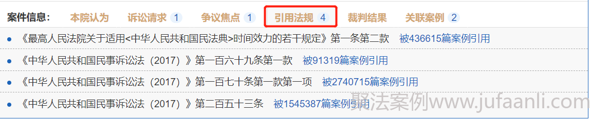 聚法案例通过大数据分析,将每个法律条文被引用的情况进行展示,可快速查看引用过该法条的所有案例。
