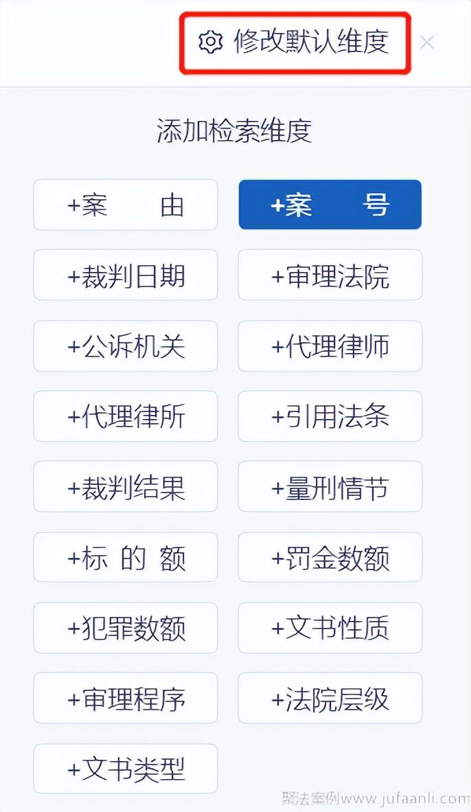 聚法案例高级检索将18个检索维度整合,操作简单,1次检索相当于在普通检索工具上进行多次检索。