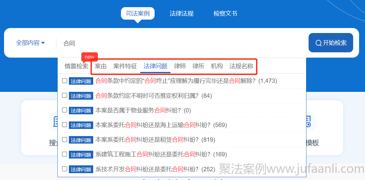 聚法案例人工提取案件事实,整理成每个案例的“案件特征”“法律问题”等,形成聚法案例独特的联想检索方式。