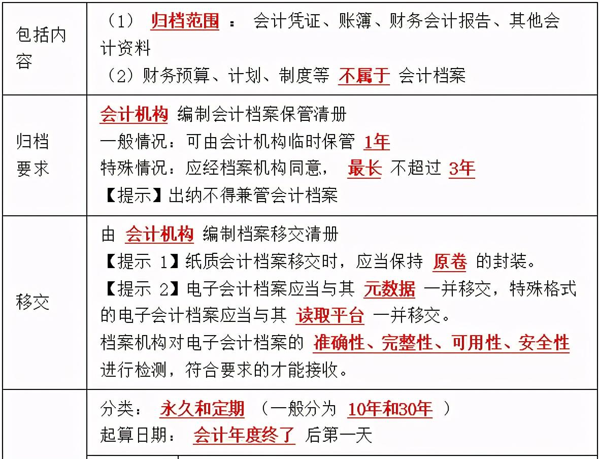 【知识点2】会计档案管理(★★★)