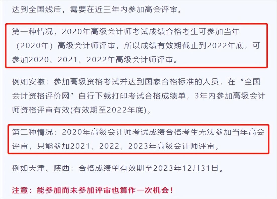 3、高级会计师考过1科后需要近3年内参加高会评审。