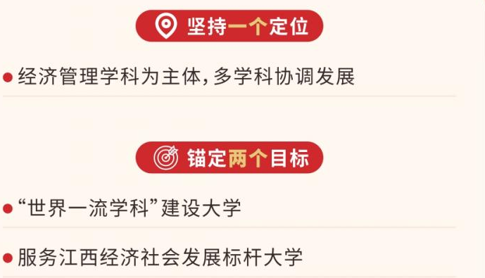 不过,江西财经大学永葆奋斗精神,在其十四五规划中,明确提到要锚定“世界一流学科”建设大学、服务江西经济社会发展标杆大学两个目标,努力建设“基础厚实、特色鲜明、人民满意、国际知名的高水平财经大学”。